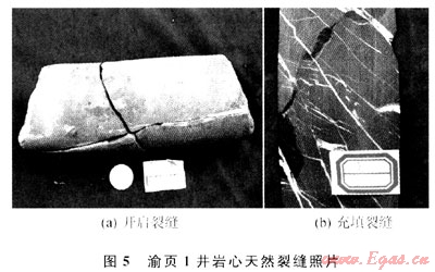 對(duì)于新完鉆的頁(yè)巖氣井,要獲得工業(yè)性氣流,必須采用水力壓裂改善儲(chǔ)層的滲透能力,在進(jìn)行壓裂作業(yè)時(shí),應(yīng)該結(jié)合完井方式,儲(chǔ)層特點(diǎn)選擇合適的壓裂工藝。根據(jù)國(guó)外頁(yè)巖氣開(kāi)發(fā)的經(jīng)驗(yàn),深度較淺(低于1500m)或壓力較低的頁(yè)巖儲(chǔ)層一般使用氮?dú)馀菽瓑毫?,中等深?1500~3000m)的儲(chǔ)層則適宜使用清水壓裂開(kāi)采。氮?dú)馀菽瓑毫褜?duì)頁(yè)巖儲(chǔ)層無(wú)傷害,成本低,收益快,是我國(guó)頁(yè)巖氣勘探開(kāi)發(fā)初期淺井開(kāi)發(fā)比較合適的壓裂方式,美國(guó)頁(yè)巖氣開(kāi)發(fā)早期曾使用氮?dú)馀菽瓑毫?,在?dāng)時(shí)取得了良好的效果,現(xiàn)在在某些特殊儲(chǔ)層壓裂仍然使用[23~24]。我國(guó)頁(yè)巖氣儲(chǔ)層除少數(shù)地區(qū)埋深較淺外,大多數(shù)埋深大于1500m,對(duì)于埋深小于1500m的有利儲(chǔ)層或開(kāi)發(fā)前期的勘探淺井,可以嘗試使用氮?dú)馀菽瓑毫?;?duì)于埋深在1500~3000m的有利儲(chǔ)層,清水壓裂是最適宜的壓裂方式。對(duì)于開(kāi)采長(zhǎng)度(厚度)大的頁(yè)巖氣井,可以結(jié)合儲(chǔ)層的特點(diǎn),嘗試使用清水壓裂與多級(jí)壓裂相結(jié)合的水力壓裂技術(shù);對(duì)于埋深在3000m以下的儲(chǔ)層,考慮到開(kāi)采成本和技術(shù)的可行性,可暫時(shí)不用開(kāi)發(fā)。2009年完鉆的渝頁(yè)1井是我國(guó)第一口勘探淺井,通過(guò)對(duì)渝頁(yè)1井的巖心分析,我國(guó)上揚(yáng)子地區(qū)龍馬溪組頁(yè)巖天然裂縫系統(tǒng)較發(fā)育,蒙脫石含量少,水敏性弱,不同深度含氣性各異,因此可采用清水分段壓裂(圖5)。