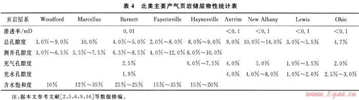 北美地區(qū)頁巖氣儲層物性評價采用了美國天然氣研究所(1996)研制的GRI頁巖巖心測定方法。該方法不僅可以測定頁巖基質(zhì)總的孔隙度,還可以測定出含氣孔隙度,且測定出的頁巖滲透率最低可達(dá)10-14mD[11]。國內(nèi)目前不具備此技術(shù),只能按常規(guī)儲層物性分析方法測試,故不能與北美頁巖物性進(jìn)行比對。