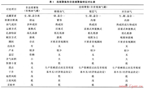 連續(xù)油氣藏一詞最早是USGS(美國(guó)地質(zhì)調(diào)查局)1995年進(jìn)行油氣資源評(píng)價(jià)時(shí)用來區(qū)別與常規(guī)油氣藏不同的一種新型氣藏的名稱。對(duì)這類油氣藏[括煤層氣藏、頁(yè)巖油氣藏、根緣油氣藏(深盆油氣藏)]需要采用專門的評(píng)價(jià)方法[10]。筆者認(rèn)為,這類連續(xù)油氣藏不但在資源評(píng)價(jià)方法上與常規(guī)油氣藏不同,而且在地質(zhì)特征上也與常規(guī)油氣藏有著本質(zhì)的區(qū)別。