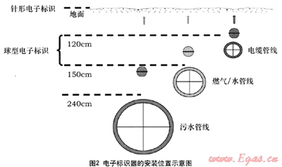 電子標識系統(tǒng)在歐美發(fā)達國家已有40多年的使用歷史,白上個世紀末以來,在我國燃氣行業(yè)也開始逐步得到應用。它不僅可以指示出其埋設(shè)的位置,還可以將內(nèi)部儲存的信息,比如提示管道口徑、埋設(shè)時間、三通彎頭、閥門、周邊建筑物情況等特征點的精確信息發(fā)送給電子探測儀,有效彌補其它示蹤方式的不足。