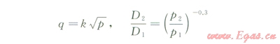 式中q為流量,m3/ min;p為壓力,kPa;k為流量—壓力系數(shù),與管徑大小有關(guān);D1和D2分別對(duì)應(yīng)壓力p1和p2時(shí)的液滴直徑。