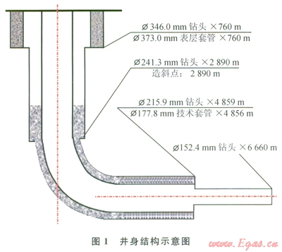 2)該井采用特殊井身結(jié)構(gòu),先在Æ215.9mm井段鉆進(jìn)一段水平井段,下套管固井后,再進(jìn)行Æl52.4mm水平段鉆進(jìn),有效地減少鉆進(jìn)過(guò)程中摩阻及扭矩。