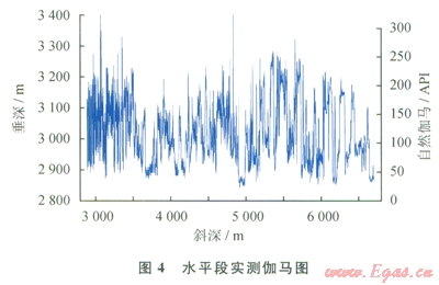待鉆井眼設(shè)計(jì)盡量降低井眼曲率[5],特別是能避免局部造斜率偏高,以降低鉆進(jìn)時(shí)的摩阻和扭矩。為了滿足水平段施工需要,采用Æl27mm單彎螺桿,提高了螺桿的動(dòng)力及使用壽命。該套鉆具組合復(fù)合增斜率0.2°/根~0.3°/根,滑動(dòng)降斜率為0.3°/m~0.4°/m。進(jìn)行定向造斜采用MWD無(wú)線隨鉆測(cè)量方式,測(cè)點(diǎn)距鉆頭位置大約有12m的距離,每次測(cè)斜必須對(duì)井底走向進(jìn)行預(yù)測(cè)。根據(jù)不同鉆進(jìn)方式增斜規(guī)律,從而推斷出井底的井斜角和方位角。同時(shí)嚴(yán)格按照現(xiàn)場(chǎng)地質(zhì)導(dǎo)向人員要求控制軌跡,并通過(guò)巖屑、氣測(cè)值、伽馬、鉆時(shí)及鄰井地質(zhì)資料綜合分析,確保井眼軌跡穿越最有效的氣層中穿越(圖4)。