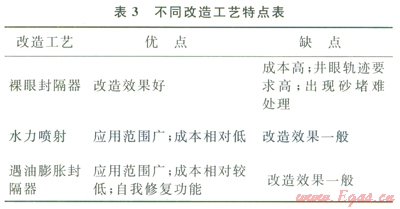 蘇里格氣田水平井儲層改造基本采用3種改造工藝[8](表3):裸眼封隔器壓裂工藝、水力噴射壓裂工藝和封隔器遇油膨脹壓裂工藝。施工中主要針對不同儲層和井況條件優(yōu)選改造工藝。以該氣田中部蘇6-18-20H1、蘇6-18-20H2叢式水平井組為例,因該井組的2口井儲層和井況條件存在較大差異,分別選用了裸眼封隔器壓裂工藝和水力噴射壓裂工藝,試氣求產(chǎn)無阻流量分別達(dá)到51.3×104m3/d、52.4×104m3/d。