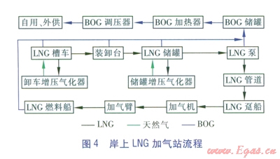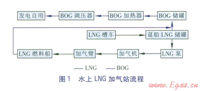LNG儲存及加氣系統(tǒng)產(chǎn)生的BOG氣體經(jīng)儲存、加熱、調壓后,部分供岸上站內生活自用,其余部分供應站外用戶。
