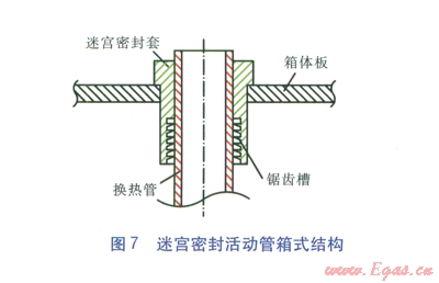 采用端面填料函密封的活動管箱式結(jié)構(gòu)時,一組管箱的制造安裝費用為7.64×104元。采用迷宮密封活動管箱式結(jié)構(gòu)時,一組管箱的制造安裝費用為13.52×104元。前者的使用壽命為l0~l2個月,后者的使用壽命為6年以上。因此,在滿足使用壽命的前提下,采用迷宮密封活動管箱式結(jié)構(gòu)的空氣預熱器的技術(shù)經(jīng)濟性可以接受。