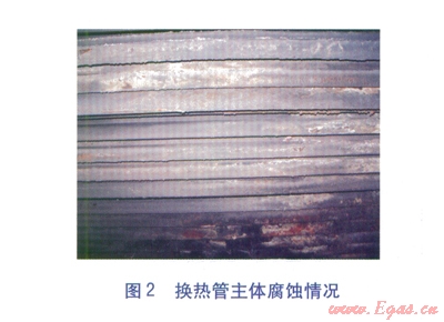 按單純改善換熱管材質(zhì)考慮,當換熱管采用20號鋼時,一組管箱(整體焊接的固定管箱式結(jié)構(gòu))的制造安裝費用為2.85×104元。當換熱管采用ND鋼時,一組管箱(整體焊接的固定管箱式結(jié)構(gòu))的制造安裝費用為6.96×104元。后者的制造安裝費用為前者的2.44倍,但使用壽命并未明顯延長,最長為5~10個月。