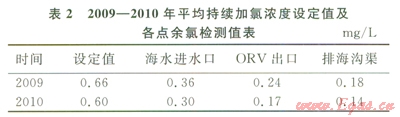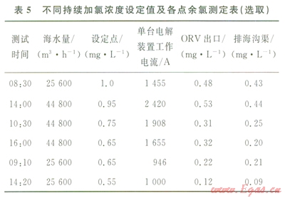 2)海水余氯濃度處于設備長期運行所能承受的范圍內(nèi)。
