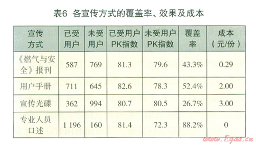 (6)加強(qiáng)《燃?xì)馀c安全》報(bào)刊的發(fā)放工作,根據(jù)其較低的成本和較好的宣傳效果,現(xiàn)有的43.3%的覆蓋率明顯偏低。