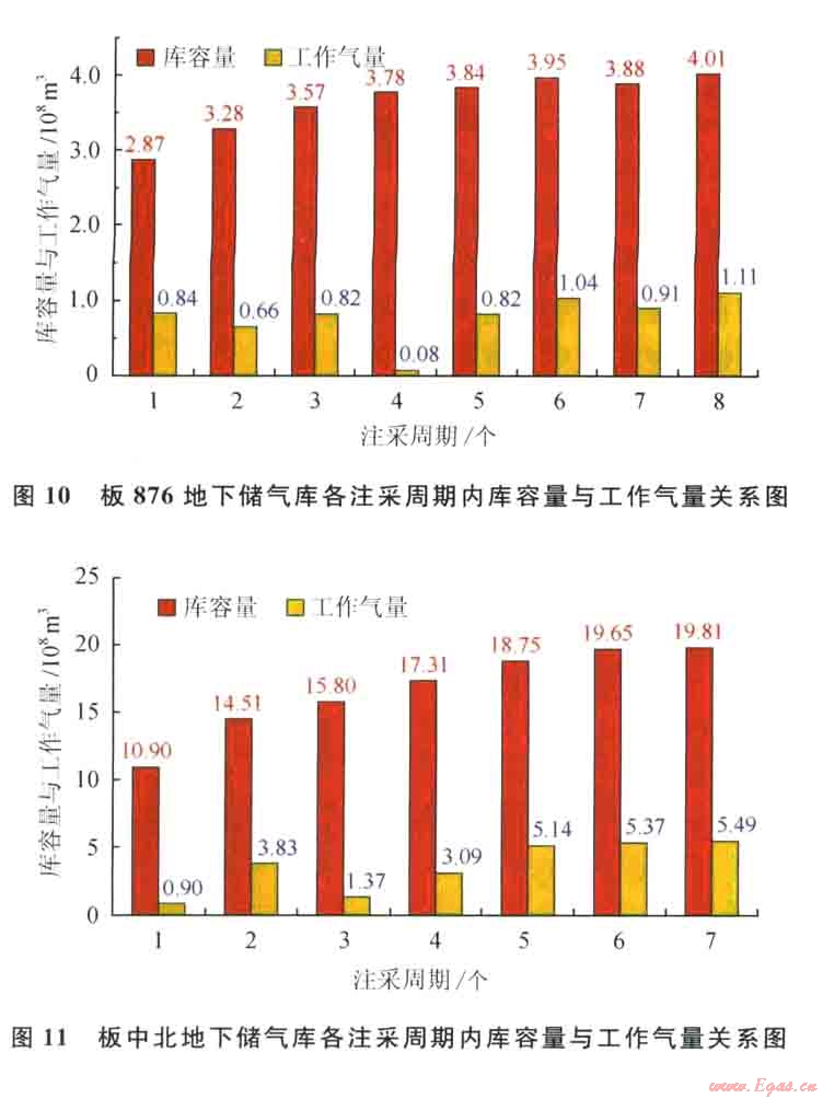 表1 板876地下儲(chǔ)氣庫不同注采周期庫容量的變化情況表