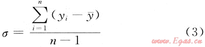 式中:σ為實驗標(biāo)準(zhǔn)偏差;yi為第i次的測量值;