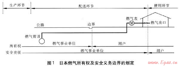 在日本,燃?xì)馑袡?quán)是以公路與用戶(hù)地產(chǎn)之間的邊界來(lái)劃定的。但燃?xì)馐聵I(yè)單位的安全保障義務(wù)延伸至用戶(hù)地產(chǎn)內(nèi)燃?xì)獗砗蟮膽?hù)內(nèi)燃?xì)夤艿?,甚至直達(dá)燃?xì)獬隹?。另外,燃?xì)馐聵I(yè)單位有義務(wù)檢查用戶(hù)燃?xì)饩叩耐暾裕€要向用戶(hù)說(shuō)明如何安全使用該類(lèi)燃?xì)饩摺?/span>