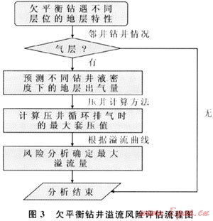 欠平衡鉆井溢流風險評估的核心是:根據欠平衡井鉆遇的地層特性,預測不同欠壓值下的地層出氣量,再通過壓井計算確定循環(huán)排氣時的最大套壓值,最后判定允許的溢流量及關井時間(圖3)。