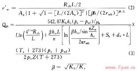 對于水平井,首先計算水平的有效井筒半徑,再計算水平井地層出氣量[8]。