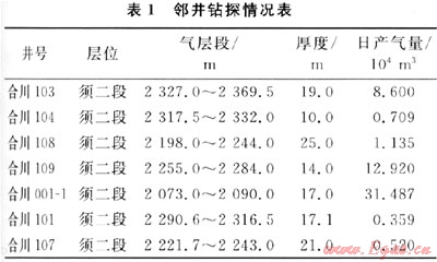 合川X井是一口開發(fā)井,鄰井鉆探情況見表1,鄰井物性參數見圖4。