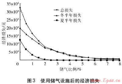使用儲氣設(shè)施后的燃?xì)庳?fù)荷預(yù)測誤差造成的經(jīng)濟(jì)損失見圖3。