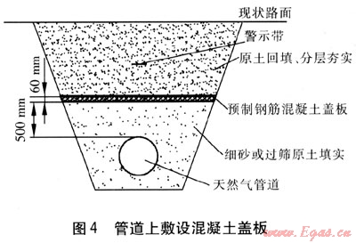 管道的選線是設計中的先導性、基礎性工作,不僅決定著工程造價,而且決定著管道的運行安全。如果設計中不注意管道所經(jīng)地區(qū)的地質(zhì)條件、地震情況、水文資料以及所經(jīng)區(qū)域的發(fā)展規(guī)劃,就可能使管道敷設在不穩(wěn)定地層、地下采空區(qū)、泥石流滑坡地區(qū)、未來城市中心區(qū)等,均會導致管道運行時由于自然災害和人為因素而發(fā)生管道事故。管道選線的基本指導原則應是保持管道敷設土層穩(wěn)定可靠、減少人類活動對管道的影響這一安全第一原則。選線時應通過基礎資料(如地質(zhì)勘探資料、水文資料、未來規(guī)劃等),選定管道的平面位置,有必要時,還需要進行選線勘查(可行性研究階段勘查),探明地質(zhì)構(gòu)造、地層巖性、水文地質(zhì)等概況,并判斷可能產(chǎn)生的自然災害及人為危害因素,采取相應的措施。如,管道上下坡段,為減少坡面侵蝕,應采用擋土墻(漿砌、灰土等)作為深層防沖措施(見圖1),同時采用土工合成材料(土工格室、植生帶)作為淺層護面措施,防止坡面降雨的擊濺侵蝕。對于坡腳,通常采用護坡或擋墻作為防止坡腳侵蝕的措施。穿越巖質(zhì)河床,則采用混凝土連續(xù)澆注。對于鵝卵石河道,則采用淤土壩作為防沖切的深層保護措施(見圖2)。沿河敷設的管道采用砌筑護坡或漿砌護岸(見圖3)。若經(jīng)過現(xiàn)狀或規(guī)劃的三、四級地區(qū),則應采取增大管道壁厚、提高焊縫檢驗比例、管道上敷設混凝土蓋板等措施防止人類活動對管道的影響(見圖4)。如上述武漢市高壓B管道被鉆破事件,若管道之上敷設有混凝土蓋板,既可有效防止此類事故發(fā)生,又可減少挖掘機等機械破壞。