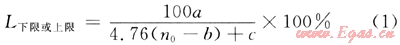式中L下限或上限為單組分氣體的爆炸下限或上限;n0為每摩爾有機(jī)可燃性氣體完全燃燒時(shí)所必需氧原子的物質(zhì)的量;當(dāng)計(jì)算爆炸下限時(shí),a=b=c=1;當(dāng)計(jì)算爆炸上限時(shí),a=c=4,b=0。