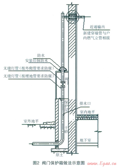 ①地上引入時(shí)設(shè)置室外閥門保護(hù)箱