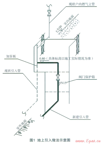 燃?xì)庖肟跒橥ピ喝細(xì)夤艿琅c戶內(nèi)燃?xì)夤艿赖姆纸琰c(diǎn),分為地上引入口和地下引入口兩種,是管件的主要集中部位,也是安全事故多發(fā)部位。用戶引入口更貼近居民的日常生活區(qū)域,一旦發(fā)生泄漏事故將直接危及居民的人身、財(cái)產(chǎn)安全。岡此,能否對(duì)燃?xì)庖肟谶M(jìn)行安全、合理的改造,是實(shí)現(xiàn)安全用氣,造福于民的關(guān)鍵措施之一。