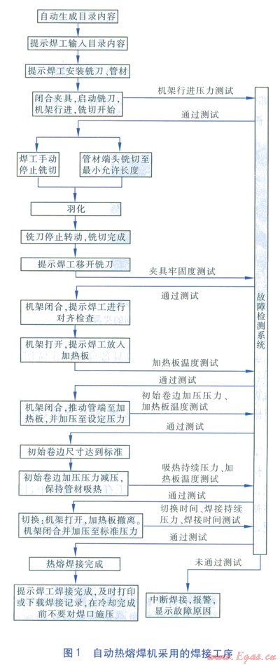 自動化控制的焊接程序具有以下優(yōu)點:減少人工操作步驟,降低人為因素對焊接質(zhì)量的影響;自動設定、檢測焊接參數(shù),當焊接參數(shù)超標時可報警并中斷焊接;可提供焊接記錄。