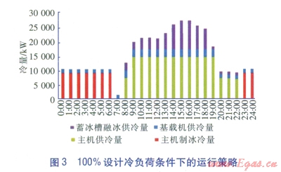 由圖l~3可知,在低谷電價時段,充分利用制冷主機(jī)進(jìn)行制冰;在峰段電價時段,充分利用融冰制冷,減少高峰電力的使用。由此可知,根據(jù)能源站優(yōu)化控制模型制定的控制策略,可獲得較好的經(jīng)濟(jì)效益。