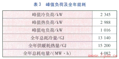 該醫(yī)院的峰值負(fù)荷及全年能耗匯總見表3。