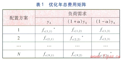 表1是由各種配置方案在3種不同負(fù)荷需求下優(yōu)化得到的年總費(fèi)用所構(gòu)成的矩陣。“*”表示在某種負(fù)荷需求下,該方案的年總費(fèi)用最小。