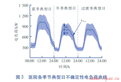 分布式能源系統(tǒng)的優(yōu)化配置對(duì)于獲得好的經(jīng)濟(jì)效益至關(guān)重要,而優(yōu)化配置又強(qiáng)烈依賴于用戶的各類負(fù)荷需求。目前在優(yōu)化配置中通常采用兩種負(fù)荷,一種是夏季、冬季和過渡季等幾種典型日的負(fù)荷預(yù)測值[7],另一種是全年逐時(shí)(8760h)負(fù)荷預(yù)測值[8]。但前者忽略了同一個(gè)季節(jié)內(nèi)負(fù)荷的差異;即使是基于后一種方法,現(xiàn)實(shí)中存在的氣象條件、內(nèi)擾不確定性,以及各能量預(yù)測供應(yīng)的對(duì)象、面積與實(shí)際運(yùn)行時(shí)的偏差,也可能導(dǎo)致聯(lián)供系統(tǒng)的設(shè)備投資浪費(fèi)或不足、經(jīng)濟(jì)效益無法充分發(fā)揮,極端情況下甚至?xí)霈F(xiàn)停運(yùn)的尷尬局面,上海黃浦區(qū)中心醫(yī)院就是典型的例證[9]。因此,考慮用戶負(fù)荷需求的不確定性,以增強(qiáng)分布式能源系統(tǒng)經(jīng)濟(jì)效益的魯棒性,是聯(lián)供系統(tǒng)優(yōu)化配置的現(xiàn)實(shí)需求。