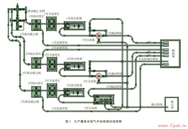 自主研發(fā)了適用壓力35 MPa的抗硫蒸汽熱交換器、適用壓力l0 MPa的抗硫兩相分離器、適用壓力1 MPa的抗硫緩沖計量罐、改進型適用壓力l05 MPaRTTS封隔器、遠程數(shù)據(jù)自動采集及安全控制系統(tǒng),使高含硫氣井地面測試能力從30×104 m3d提高到450×104 m3d,解決了高含硫大產量氣井測試技術的瓶頸問題。