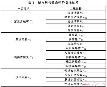 城市燃氣管道的綜合評價指標體系是對燃氣管道進行風險評價的基礎(chǔ)。依據(jù)一套能夠全面反映燃氣管道系統(tǒng)運行狀態(tài)的評價指標體系所作出的風險評價結(jié)果能夠真實地反映城市燃氣管道風險狀況;能夠為燃氣公司預(yù)防危險事故的發(fā)生提供合理且有效的信息??梢姌?gòu)建全面科學的評價指標體系對于風險評價具有舉足輕重的作用,同時也能夠推進城市燃氣管道系統(tǒng)風險管理體系的建設(shè)。