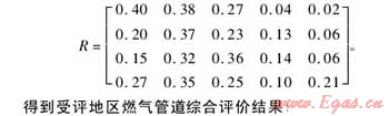根據(jù)前文建立的燃氣管道綜合評價層次結(jié)構(gòu)圖,結(jié)合專家知識以及管道數(shù)據(jù),采用模糊綜合評價法對某市縣城城鎮(zhèn)燃氣管道進行風險評價。