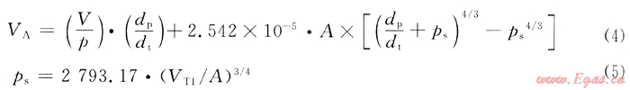 式中V為LNG儲罐內(nèi)的氣相空間,m3;p為LNG儲罐內(nèi)的操作壓力(絕壓),Pa;dp/dt為大氣壓力變化速率,Pa/h;ps為LNG儲罐內(nèi)氣液界面的過飽和壓力,Pa;VT1為LNG儲罐滿罐靜態(tài)蒸發(fā)率的一半(即對應(yīng)于儲罐內(nèi)僅有20%LNG時(shí)的液位),kg/h;A為LNG儲罐內(nèi)氣液界面面積,m2。