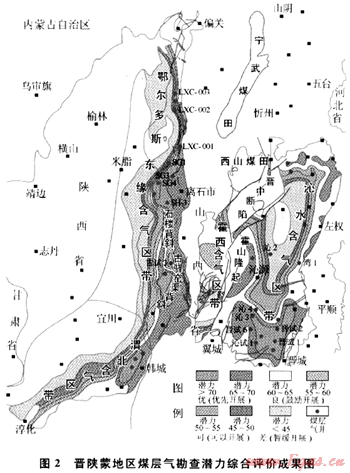 晉陜蒙地區(qū)煤層氣勘查潛力綜合評價成果如圖2所示。