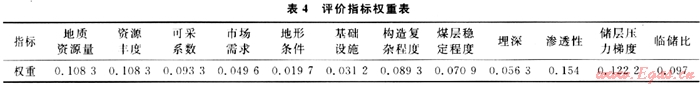 開發(fā)實踐證實斷層對煤層氣開發(fā)的影響不容忽視,很多沿斷層部署的生產(chǎn)井產(chǎn)氣很少或只產(chǎn)水不產(chǎn)氣。構(gòu)造復(fù)雜程度不僅反映了煤層氣資源破壞程度,更重要的是會影響到最終的勘探部署及開發(fā)規(guī)劃的制訂。煤層穩(wěn)定程度從一定角度代表了煤層氣資源的穩(wěn)定程度,這是資源量、資源豐度無法包容的一個屬性。煤儲層的埋深一方面反映了勘探開發(fā)的難易程度,另一方面煤炭資源勘探程度、煤層氣資源勘探程度和煤儲層埋深之間存在較為直接的關(guān)系,含氣區(qū)淺部勘探程度高,所獲數(shù)據(jù)資料更為接近煤層氣資源的本質(zhì)屬性。
