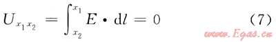 等電位端子達到靜電平衡時,根據(jù)電位差定義,端子內(nèi)任意兩點x1、x2的電位差為