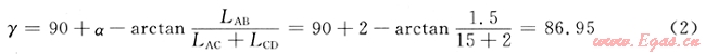 由地震剖面和隨鉆實(shí)測(cè)資料,3665m以后該井α為上傾2°,為避免儀器再次碰頂,盡量使井眼軌跡保持在靶體中間,亦即假定鉆頭到層界面距離LCD是2m,本井隨鉆電阻率的探測(cè)深度為1.5m,隨鉆測(cè)井儀器距離鉆頭LAC=15m,由式(1)計(jì)算的γ為: