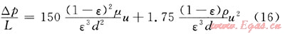 計(jì)算顆粒床層阻力采用經(jīng)典Ergun方程: