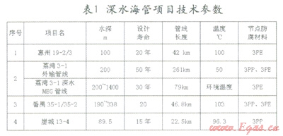 管道運輸是油氣運輸?shù)闹饕椒ㄖ?,具有連續(xù)、快捷、安全、經(jīng)濟(jì)的特點。隨著海上油氣田的不斷開發(fā),管道運輸工藝被廣泛應(yīng)用,它將海上油氣田、儲運設(shè)施或陸上處理終端連接成一個有機的整體,形成相互關(guān)聯(lián)相互協(xié)調(diào)的生產(chǎn)操作系統(tǒng)。深水油氣資源一般遠(yuǎn)離陸地,不但開發(fā)成本高而且維修非常困難,為了提高經(jīng)濟(jì)性一般深水海底管線的設(shè)計壽命都比較長,對防腐要求較高。