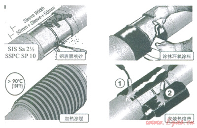 海管鋪設(shè)需要使用鋪管船等大型設(shè)備,費用非常高。為了控制施工成本必須盡可能縮短節(jié)點防腐的施工時間。熱縮帶的施工非常方便,是目前使用最廣泛的海管節(jié)點防腐材料。