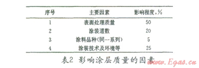表面處理的好壞對涂層質(zhì)量影響很大,有學(xué)者研究過影響涂層質(zhì)量和壽命的各種因素,結(jié)果如表5所示[1],顯然表面處理的質(zhì)量是對涂裝質(zhì)量影響最大的因素。在海管節(jié)點的防腐施工中表面處理也非常關(guān)鍵,為了保證防腐效果必須對鋼表面進(jìn)行噴砂處理,達(dá)NSa2.5級以上。
