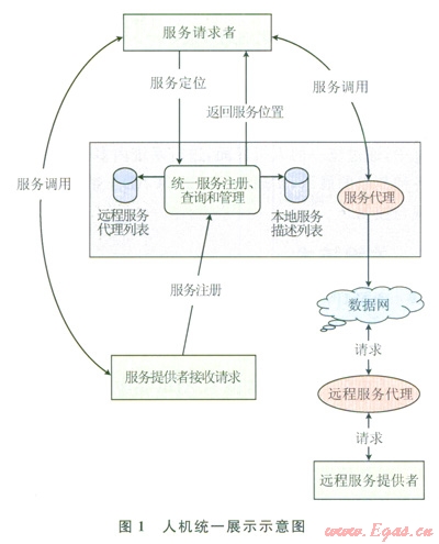 人機界面中的應(yīng)用以插件方式集成到系統(tǒng)中,控制臺負(fù)責(zé)實現(xiàn)界面集成管理功能。人機應(yīng)用通過服務(wù)接口層的服務(wù)代理與后臺服務(wù)進行交互,服務(wù)代理提供了訪問后臺服務(wù)的接口,其主要功能是接收人機應(yīng)用的服務(wù)請求并將請求通過服務(wù)總線發(fā)送給后臺服務(wù),然后接收服務(wù)應(yīng)答并返凹給人機應(yīng)用。服務(wù)代理屏蔽了訪問服務(wù)的細(xì)節(jié),使應(yīng)用元需關(guān)心服務(wù)的具體部署信息以及訪問過程,因此有很好的服務(wù)訪問透明性。