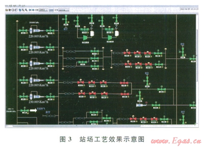 該系統(tǒng)在某油氣管道調(diào)控巾心投入使用,實現(xiàn)了人機交互畫面、系統(tǒng)組態(tài)、操作控制等功能。人機界面顯示的效果如圖3所示。