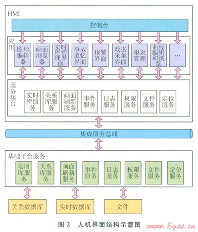3)服務(wù)接口層提供了各類應(yīng)用與后臺服務(wù)交互的接口,主要包括實時庫接口、關(guān)系庫接畫面刷新服務(wù)接口、事件服務(wù)接口、權(quán)限服務(wù)接口、文件服務(wù)接口等。服務(wù)接口層實現(xiàn)了應(yīng)用對服務(wù)的透明性訪問。