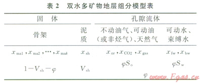 假設(shè)組分不動(dòng)油、可動(dòng)油(或非烴氣)、可動(dòng)水、束縛水、天然氣、泥質(zhì)以及巖石的各種骨架礦物在地層中的相對(duì)含量分別為:xor,xco2,xfw,xbw,xgas,xsh,xmal,xma2,…,xmak則有如下關(guān)系式。