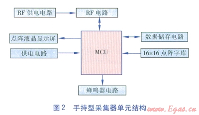 手持型采集器中MCU、供電電路、RF供電電路、RF電路、數(shù)據(jù)儲(chǔ)存電路的功能與無線遠(yuǎn)傳燃?xì)獗碇懈鲉卧墓δ芤恢隆F渌麊卧墓δ転椋狐c(diǎn)陣液晶顯示屏:負(fù)責(zé)顯示手持型采集器的工作信息及計(jì)量數(shù)據(jù);16×16點(diǎn)陣字庫(kù):作為點(diǎn)陣液晶顯示屏的字庫(kù);蜂嗚器電路:為手持型采集器蜂鳴器提供電力,保證蜂嗚器正常工作。