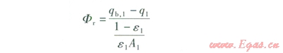 由4個(gè)灰體表面組成的有效輻射方程組見(jiàn)文獻(xiàn)[6—7],由有效輻射方程組得到室內(nèi)與頂面的輻射換熱量Fr的計(jì)算式為: