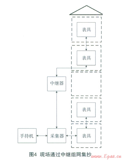 通過組網(wǎng)技術(shù),用遠(yuǎn)傳表或者中繼器來實(shí)現(xiàn)接力傳輸,從而擴(kuò)大抄表信息傳遞的覆蓋范同。