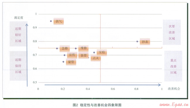 根據(jù)燃氣企業(yè)的資源現(xiàn)狀,各個服務(wù)項目滿足客戶需求的程度不一樣??蓪⑿枨蟮臐M足程度分為較好滿足、基本滿足、有待提高3個梯度。