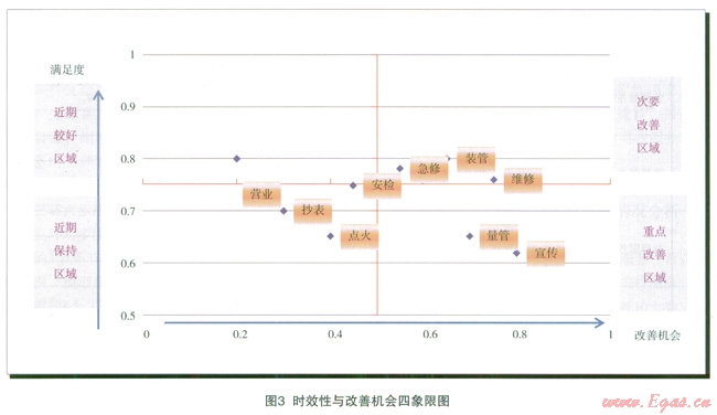 從穩(wěn)定性、時效性和便捷性與服務(wù)改善機會的象限圖,導(dǎo)出客戶關(guān)注的需求點,識別…近期服務(wù)的重點改善和次要改善機會兩方面內(nèi)容,采取相應(yīng)的改進措施(見表2和表3)。
